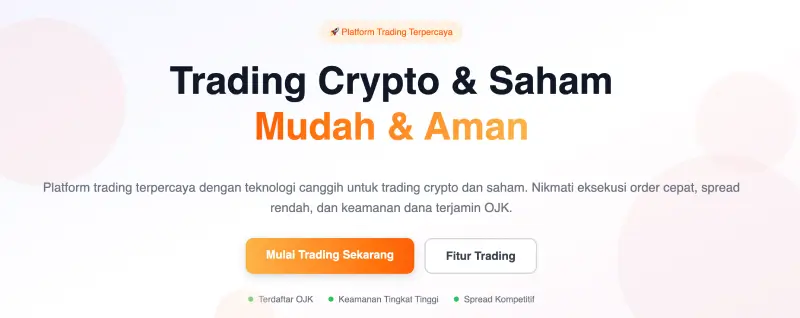 Platform trading terpercaya dengan teknologi canggih untuk trading crypto dan saham. Nikmati eksekusi order cepat, spread rendah, dan keamanan dana terjamin OJK.